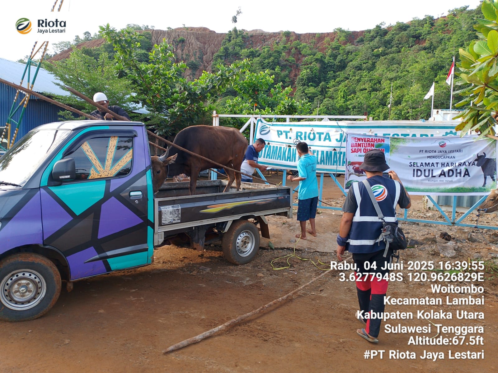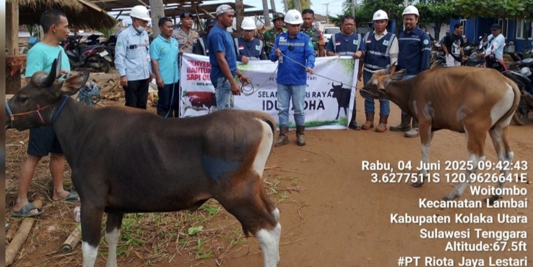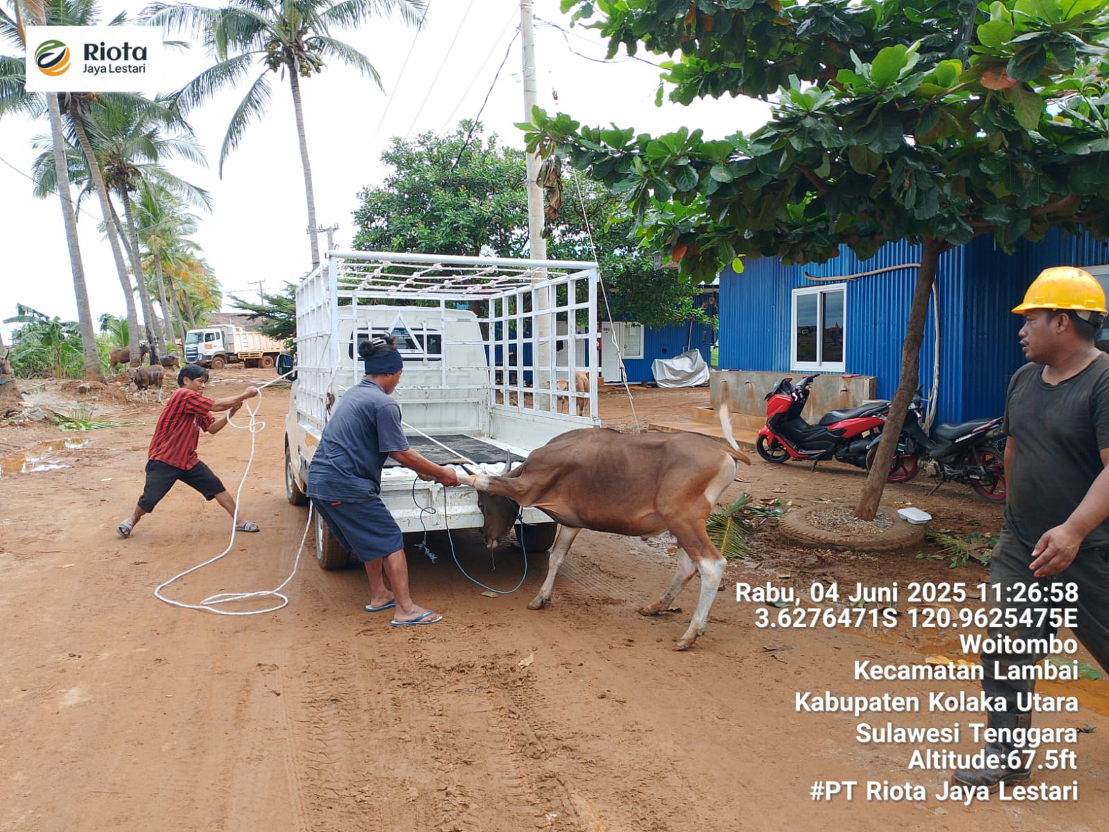 Kolaka Utara — Nuansa suci Iduladha 1446 Hijriah, PT Riota Jaya Lestari (PT RJL) kembali meneguhkan komitmennya pada nilai-nilai kemanusiaan dan spiritualitas dengan menyalurkan 35 ekor sapi kurban kepada masyarakat di wilayah lingkar tambang dan mitra sosial di Kabupaten Kolaka Utara, Sulawesi Tenggara. Jumat (06/06/2025)